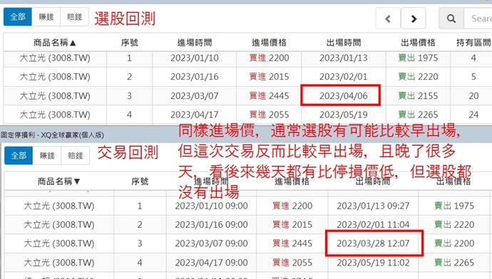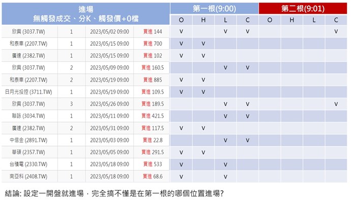 選股的進場是每日洗一次價,腳本運算判斷是否有觸發,若有觸發的話則根據設定決定今日收盤進場還是隔日開盤進場。