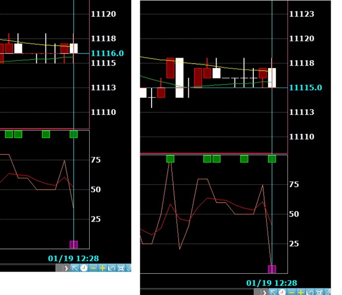 盤中當根K棒收盤價只要曾經讓K值穿越過20,就標示了,但最後收盤價並沒有真的讓K值小於20,這個圖示卻不會消失,這在自己自訂指標訊號的時候,會造成很大的困擾,正常應該是當根K棒如果小於20就標示,但如果當根K棒收盤沒有讓K值穿越20,就應該消失才是 。如果把畫面重開,重新跑過一遍指標,收盤沒有穿越20就會正常不會顯示了