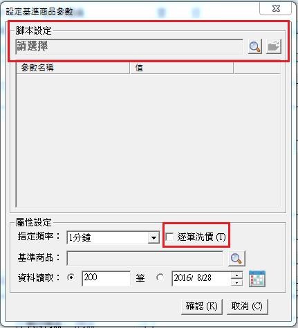 1.是不是在基準商品參照內,設定台指期近月,然後頻率設定一分鐘