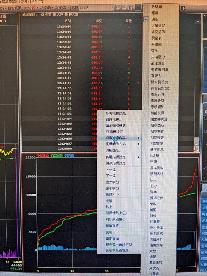 此外按滑鼠右鍵/切換資訊內容部分,對應的資訊頁面也不正確,(如圖三,欄框內為買賣力,卻顯示為明細)