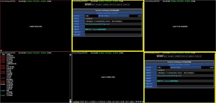 如上圖一二所示,將各個欄框同步連動,各顯示不同相關資訊,