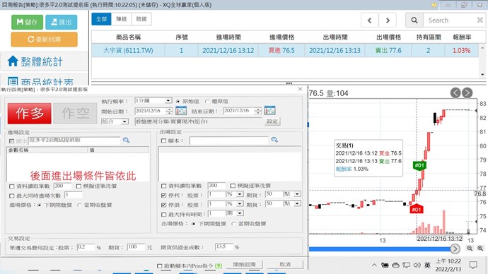 一分K模組中已寫入上面的語法,模組若只回測當日時有效,