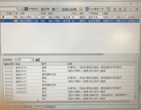 我照打回測是可以的,但是在策略雷達 盤中執行會出現執行錯誤,“計算停止,因為計算發生錯誤,請檢查腳本內的算式”,