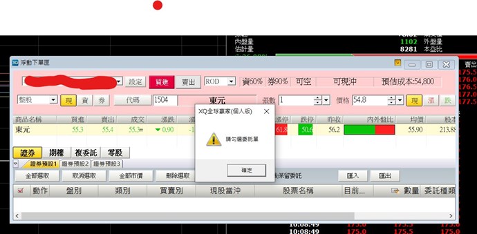 按送出委託,跳出來請我勾選委託量,我該去哪勾選才能用XQ下單