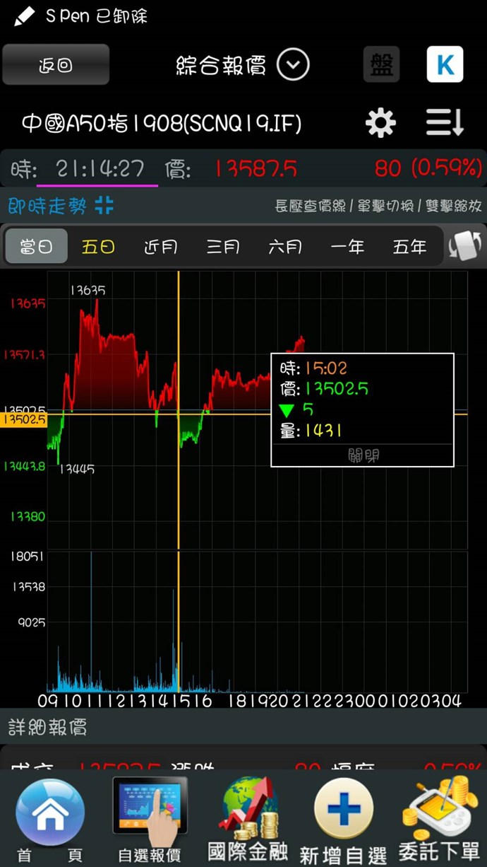 請問 今日(8/23) 新加坡交易所的中國A50期貨 下午14-16 分時K 一分K裡 怎麼會有三根超過4000口的量