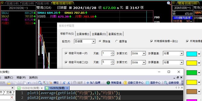 移動5日平均線"計算基準"為 "均價" 之值=>是用均價
