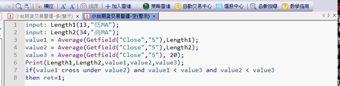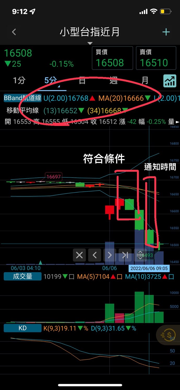 小幫手這邊確認5分鐘頻率的 SMA13 和 SMA34 在 085000 (08:50~08:55) 、 085500 (08:55~09:00) 和 090000 (09:00~09:05) 的數字分別為