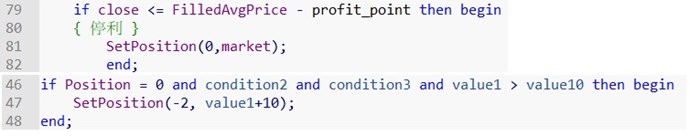 需注意若是使用逐筆洗價的話,該變數要使用 IntrabarPersist 來宣告。
