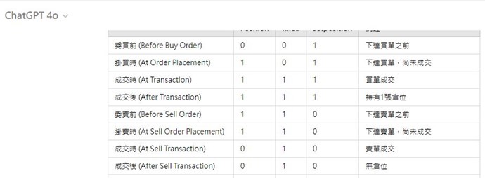 自動交易預買進一張,買進後平倉,請解析表格內的數字應為多少。GPT的以下回答是否正確?