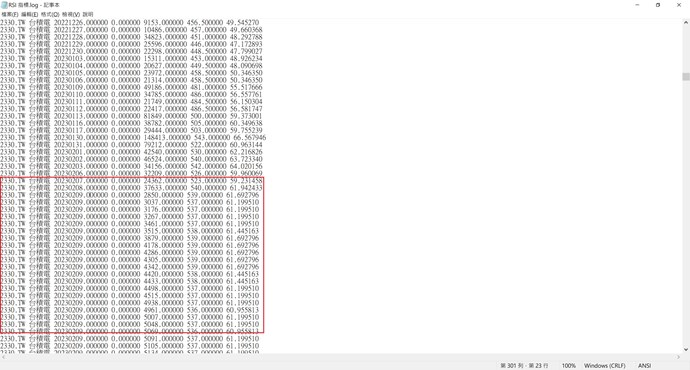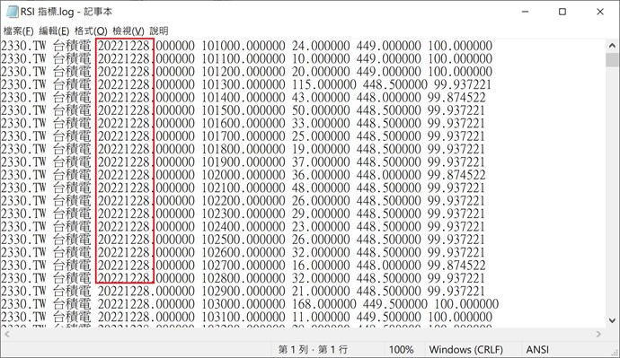 我目前撰寫一個交易腳本,裡面的程式為計算前 30 天的 RSI 後,輸出執行腳本的商品、日期與時間、RSI 到文字檔中,腳本如下: