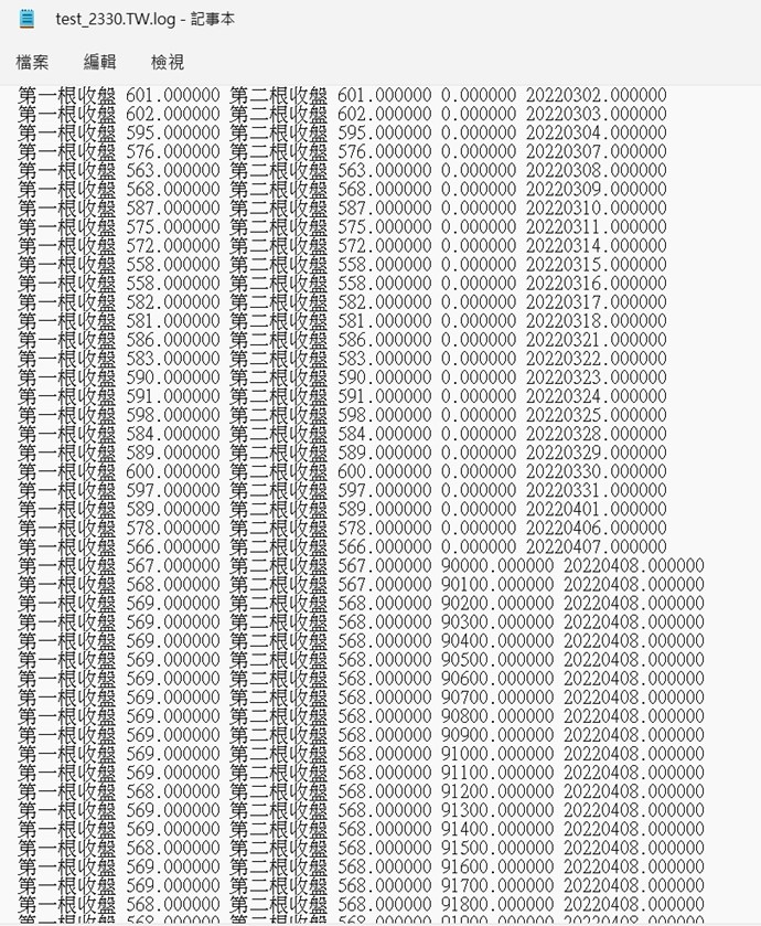 Q1:請問小幫手,我明明只回測4/8台積電,嘗試取得1分K的收盤、低點,但print出來資料卻從2021年6月開始每日一筆,一直到2022/04/08才一分鐘一筆,而且我明明設定time<=090059(090100也試過),不曉得為什麼資料會長這樣。