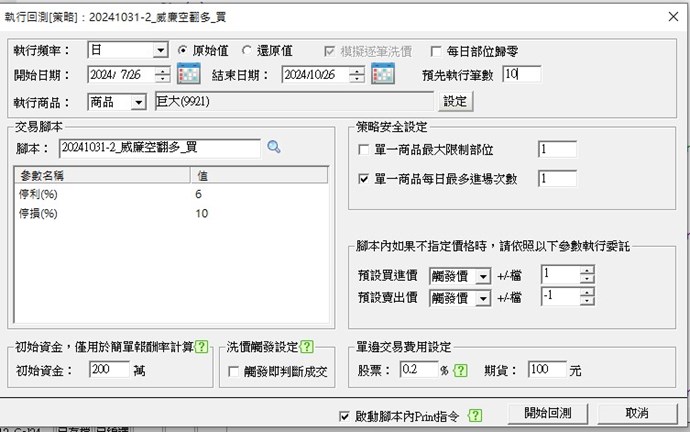 我希望每天一次,但 從 7/26 ~ 10/26 應該全部要有 3 次(從指標看)才對!但執行全部才只有一次!還有購入時間點是當日開盤價嗎?還是如何決定呢?