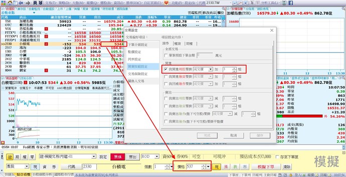 所以假設成交價是534元,只要設定買進 成交價加1檔,