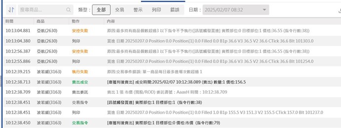 10:12:55.886 之後,都是另外一檔商品,亞航(2630),執行紀錄了,