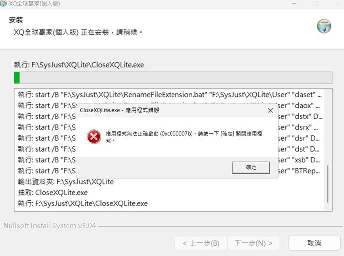 今日使用XQ時,突然出現錯誤訊息無法開啟,移除重灌之後,安裝時出現錯誤,應如何處理?