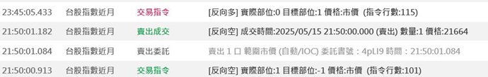 "執行紀錄"如下圖21:50的反向空實際部位1,目標部位-1,但只有賣出一張,在23:45顯示實際部位卻為0不應該是-1嘛!?