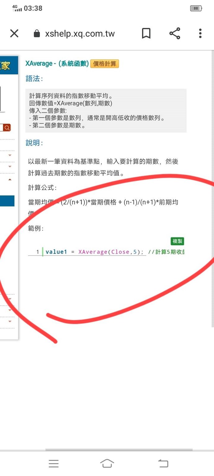 XS的內建估波指標是使用指數平均,也就是您附上圖片中的算法沒錯。