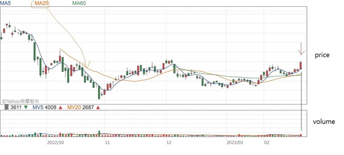 想找滿足這三個條件的股票, 類似符合下圖線型&箭頭那根K的股票