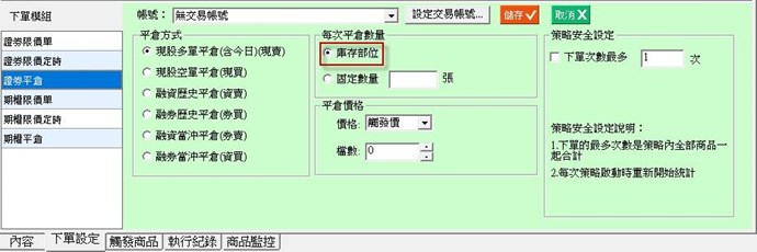 每次平倉數量:可以選擇每次觸發時,平倉數量為全部庫存張數或固定張數。