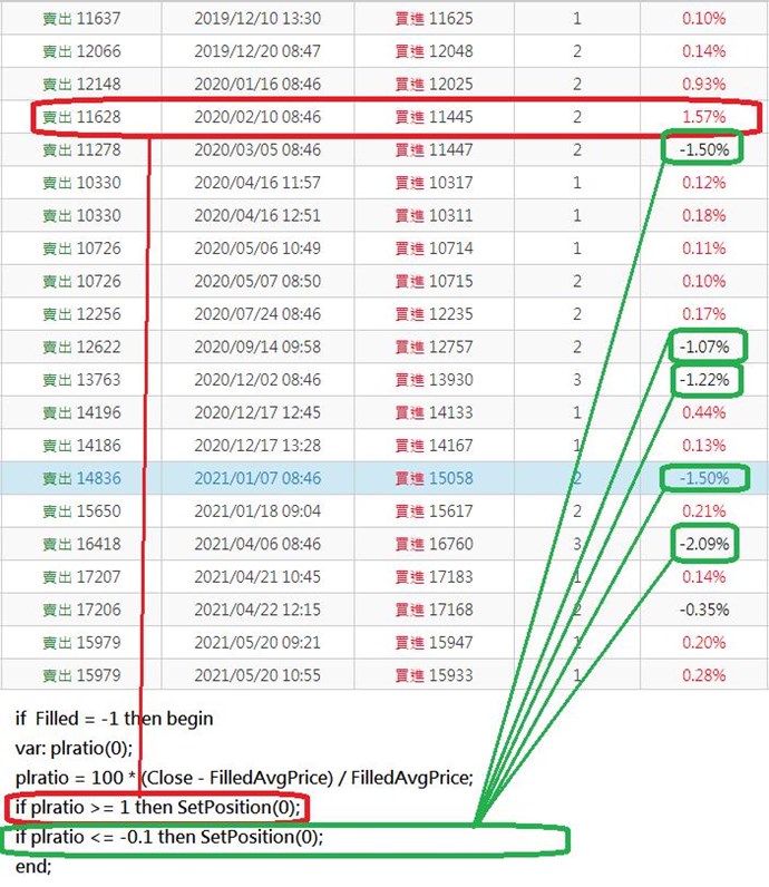 if plratio <= -0.1 then SetPosition(0);{ 停損 }