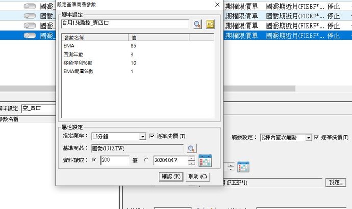 目前有一警示策略,使用頻率是15分K,判斷規則為上根K棒收完之後才決定是否觸發訊號,所以所有判斷都使用前根K棒為依據。