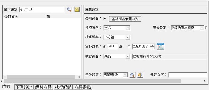 基準參照商品使用的腳本跟監控現股的腳本相同,然後在警示股票期貨使用的腳本(多_一口)只有兩行