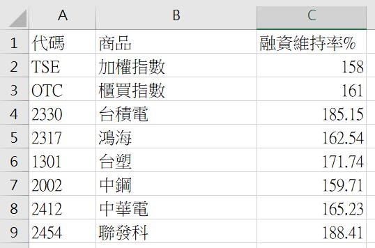 但透過報價精靈輸出到EXCEL內的融資維持率是沒有小數點的