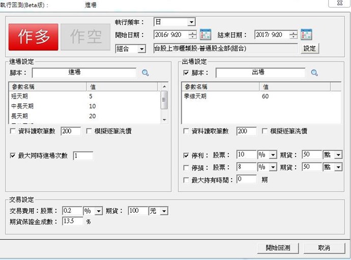 //停損 P<季線98% input:QLength(60,"季線天期"); value4 = average(close,QLength); if close < value4 * 0.98 then ret = 1;