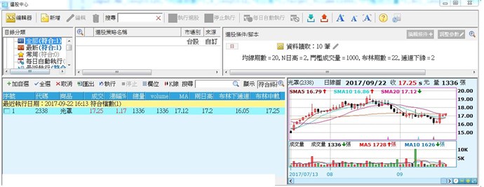分享使用選股範例腳本撰寫以下四個條件所組成的選股策略: