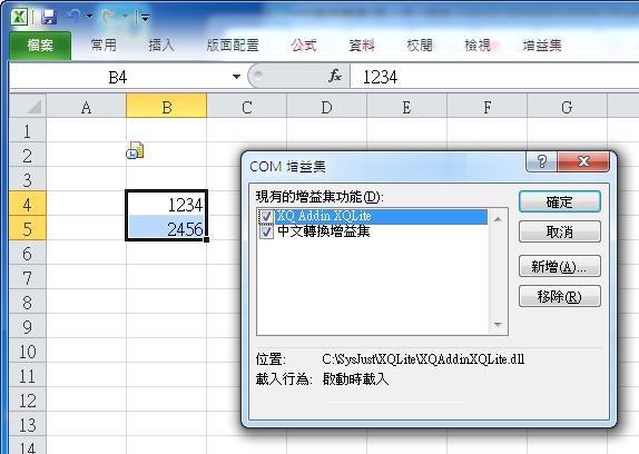 Excel 2010 - Com 增益集 - XQ Addin XQLite