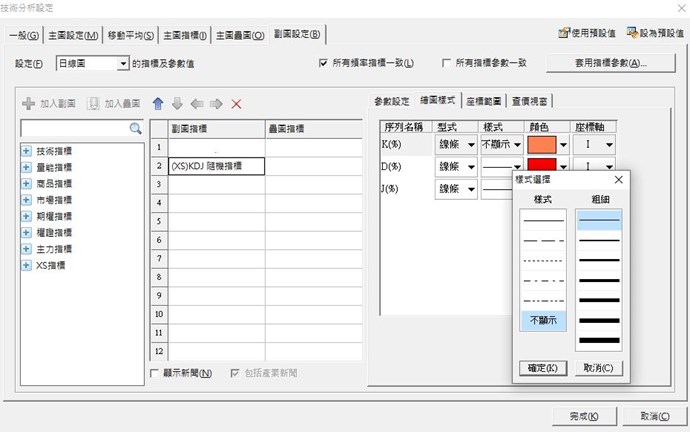 如果您不要顯示K與D,請您點選滑鼠右鍵-->設定-->副圖設定(或主圖設定),找到系統提供給您的腳本