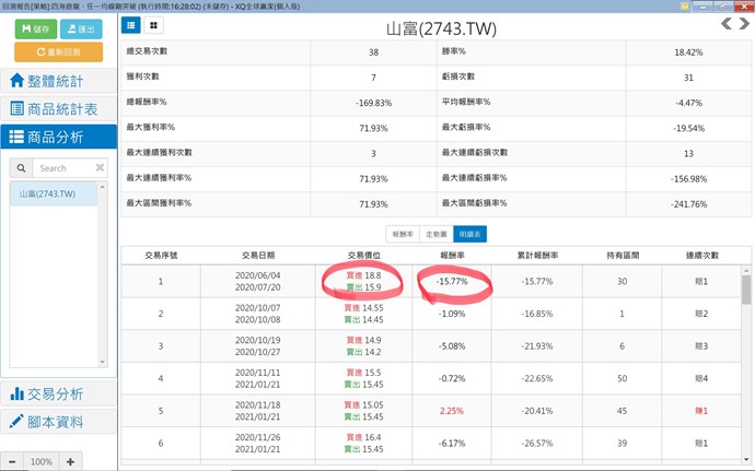 回測報表的欄位說明您可以參考 策略雷達回測功能:「回測參數」說明 此篇文章。