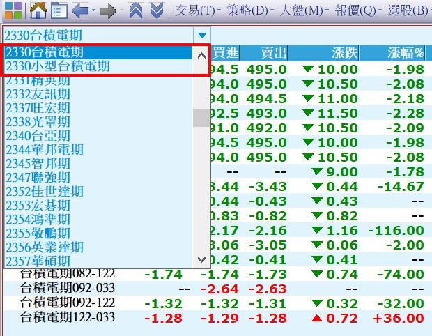 您好,若要使用個股名稱按右鍵,點選“相關期貨” => 目前大小期貨選單是分開的,需各別點選(如下圖)。或是可以參考「商品盤勢/相關期貨」。