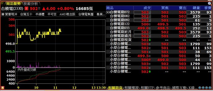 如題,在個股技術分析圖表中,個股名稱按右鍵,點選相關期貨,可以看到對應的期貨商品。