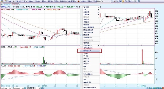 如何將個股(例如2330)每日走勢江波圖的價位以每5分鐘或每10分鐘方式匯出至excel??