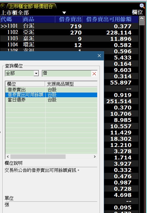 報價欄位是"借券賣出可用餘額",確切的用意思是當日限額的餘額,