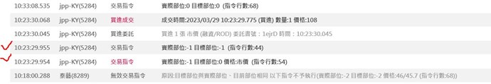 但今天執行的時候,一停損完,馬上就送出新的委託單。