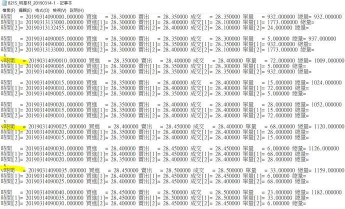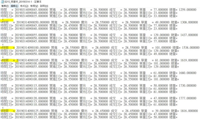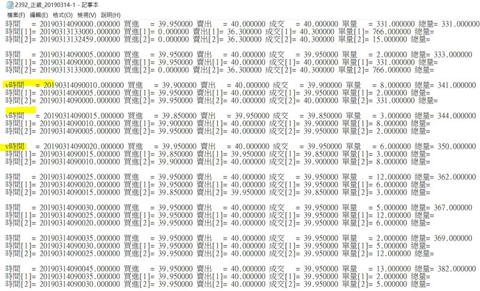 隨機檢查兩支股號開盤前一分鐘的資料,