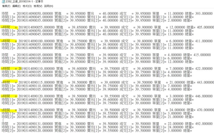 不過無法抓到成交明細的買進、賣出價,僅能抓到委託簿上面的買進、賣出價,