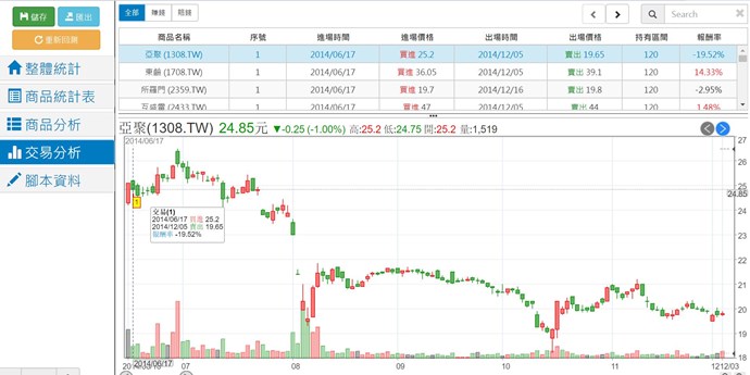 第一筆交易的原始報酬率不含手續費應該是 19.65/25.2-1 = -22% 加計手續費應該差不多-23% 系統顯示-19%