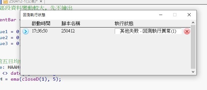 但是執行回測都會出現"其他失敗 回測執行異常(1)"
