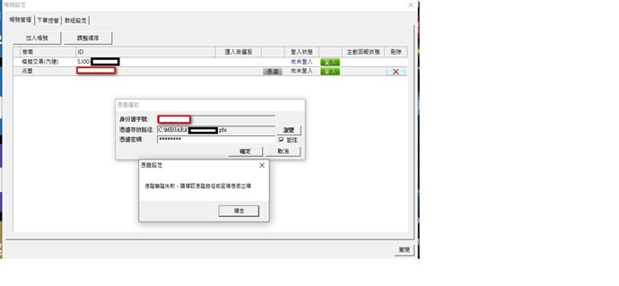 「兆豐證券、凱基證券、富邦證券」需有券商下單API許可才能通過身份驗證,另「兆豐證券」需要至臨櫃簽署同意書(重新歸戶)之後才可登入。若非以上券商不需申請開通劵商的API。