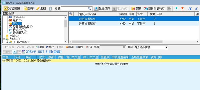 篩選結果為[即將處置結束] 0檔與[近期處置結束] 1檔。