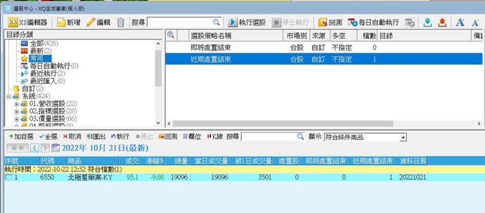 我在周六(過檔後),用以下兩個腳本重跑一次選股結果: