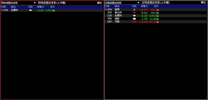 2364倫飛 最後處置日為10/24,3228金麗科最後處置日為11/1,