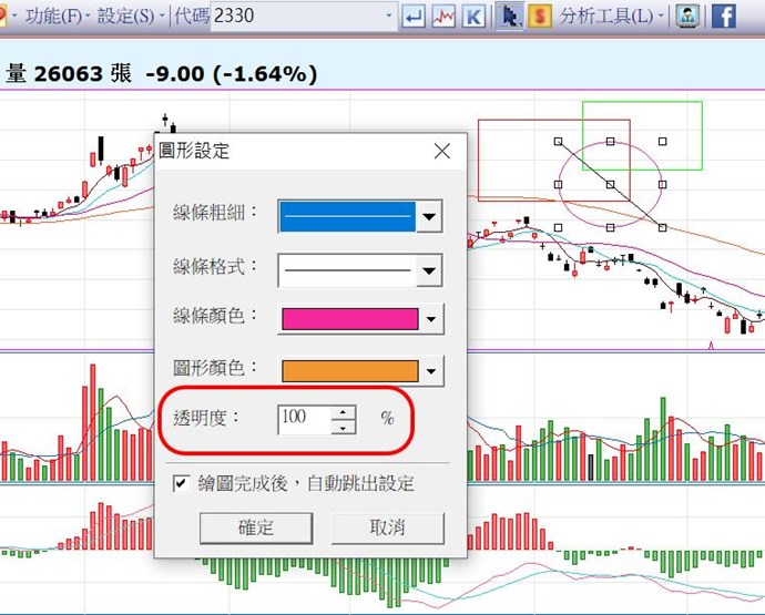 您好,請將所繪製圖形的透明度設定為100%即可(XQ請更新至目前最新版本3.08.07)