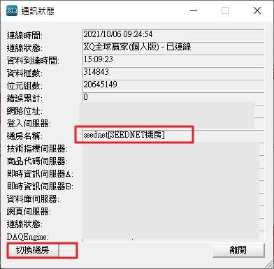 2.可以至功能選單「功能→系統狀態→通訊狀態」查看目前系統的連線狀態,以及切換機房(seednet及TTN)試試。
