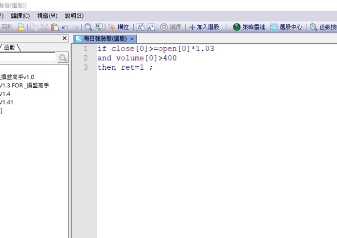 故您在盤中執行選股策略時,會使用到昨日的資料來篩選股票,