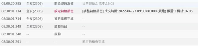 但開盤前在自動交易中心 執行紀錄 設定初始部位 卻還留存之前庫存