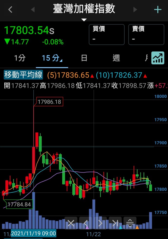 你好,加權分鐘線幾乎都有這問題,其他商品就沒這問題;剛看手機版也有一樣的問題,同樣11/19 開盤15k